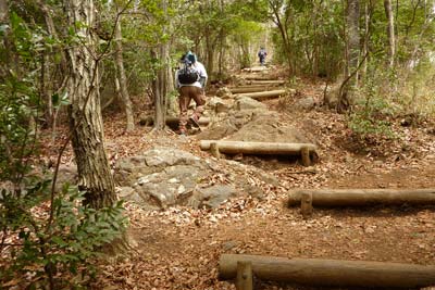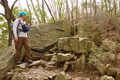 | 本ルート上に多い三毳山の名石 | 登山道脇はツツジが多い | |||