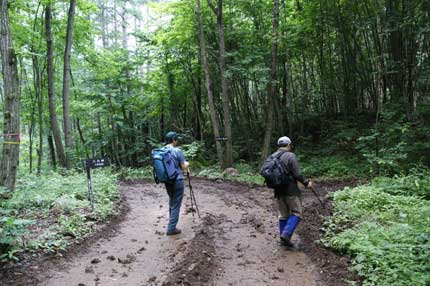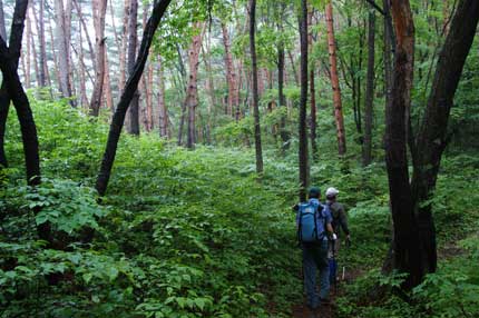 | 林道終点出合い・髻山まで300m地点 | 髻山へ | |||