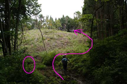 | 何のために、こんな道を造ったんだか??? | ↑ この指導標が目印だよ | |||