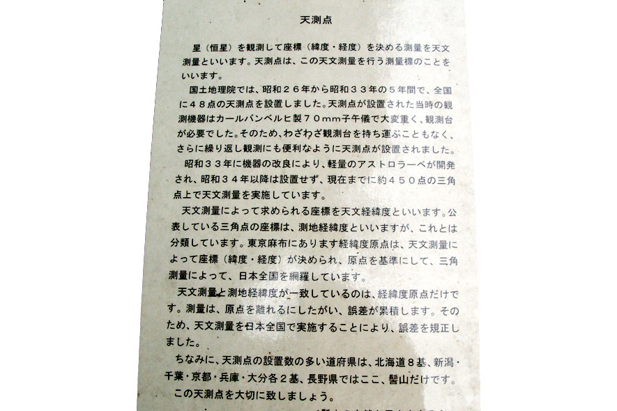 | 天測点 全国48点しかない貴重な天測点が髻山に設置されている |