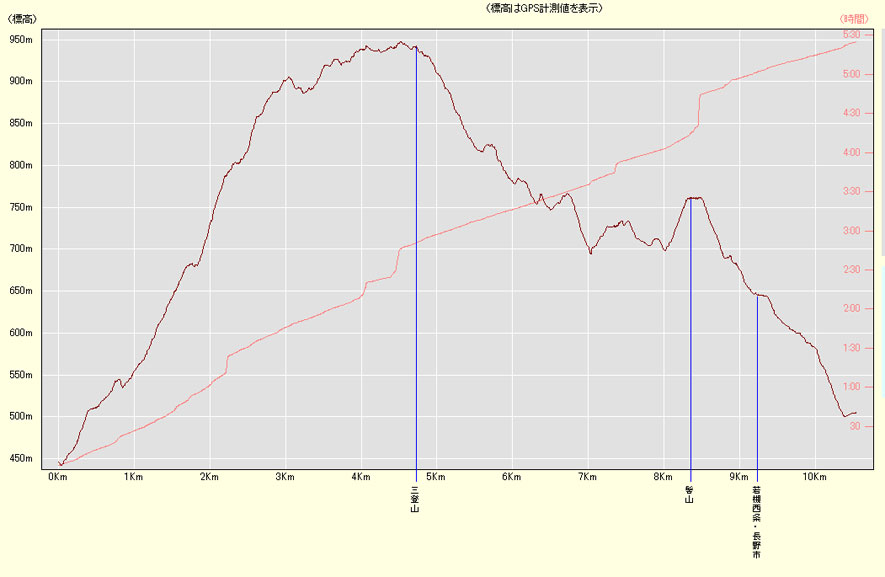 | SP〜三登山〜髻山〜髻山専用駐車場 高低図 | ||||
