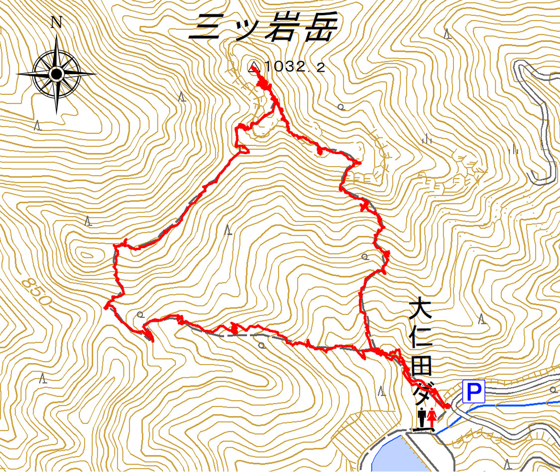 | 大仁田ダム(トイレあり)・三ツ岩岳登山口へ | ||||