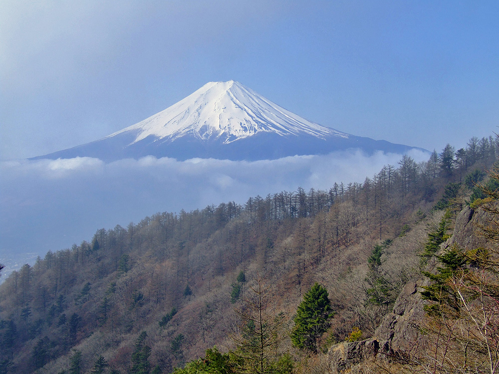 | 竜ヶ岳・三ツ峠山・石割山・平尾山の四山から望む富士山 | ||||