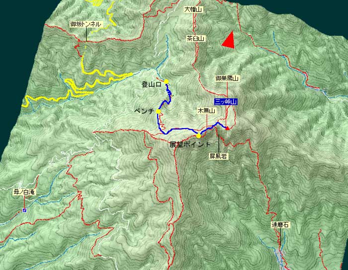 | 三ツ峠山荘でピンを購入 | 三ツ峠山荘裏が木無山 木無山表記については地図下段をお読み下さい |