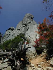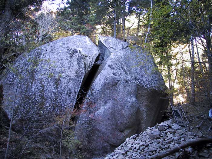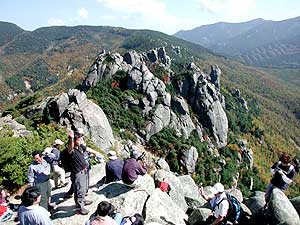 | コメント 2000.10.19 長野を零時半に出発。高速道で事故のため小淵沢より下道を走行。 到着時間が大幅に遅れ、増富温泉P着(トイレ有)am4:00(仮眠2時間半) *山頂では岩峰の多さに圧倒されました。 *早く下山できたので「増富の湯」に入湯。 高濃度のラジウム温泉で、肌を滑らかにするナトリウムイオンが治療泉基準の 数十倍の含有量があるとの事。 増富温泉に下る本谷川沿いの渓谷も紅葉の時期は見事です。 瑞牆山荘 0551−45−0521 増富の湯 0551−20−6500 |