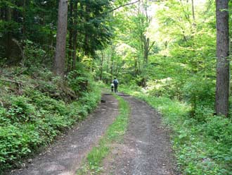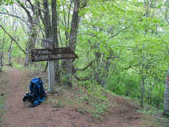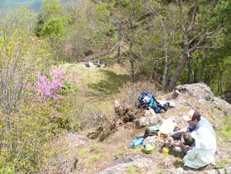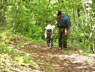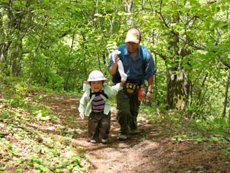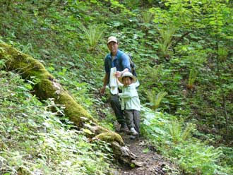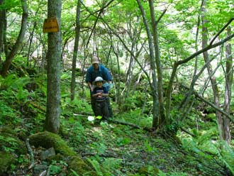 水源地上部からの急登を登り終えた聡太くん(槙沢分岐点近く) |