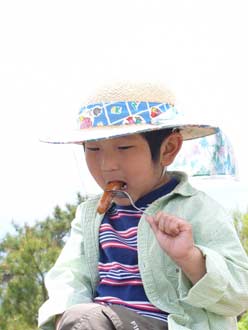 ウィンナーをほおばる聡太くん(大好物らしい) |