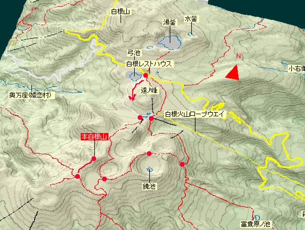 クリックすると「草津・本白根山」近辺の広域地図を見ることが出来ます。 『地図の見方、詳しい説明はメニューページ下段を参照して下さい。』 |