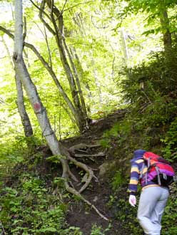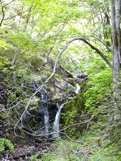 新緑の中、沢音を聞きながら登る。 |