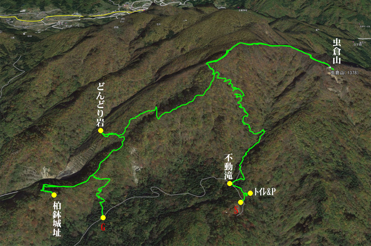 虫倉山GPSデータ DL方法=地図画面→標高→マップ機能スクロール