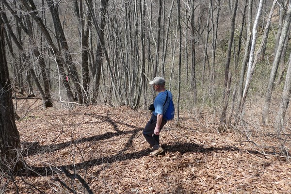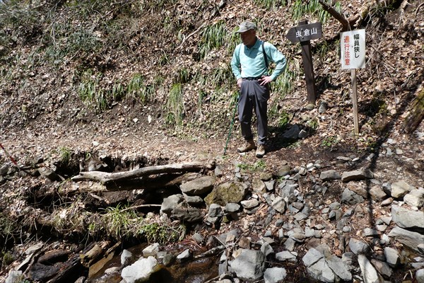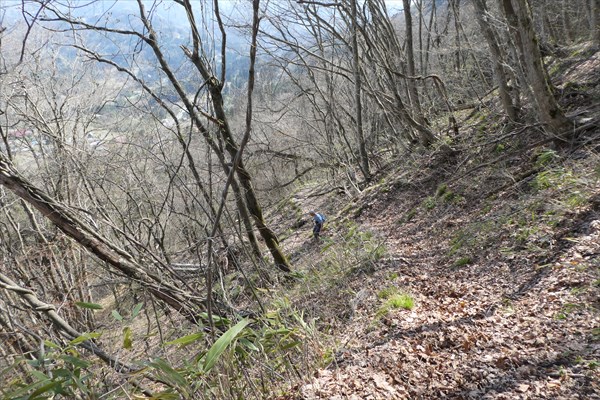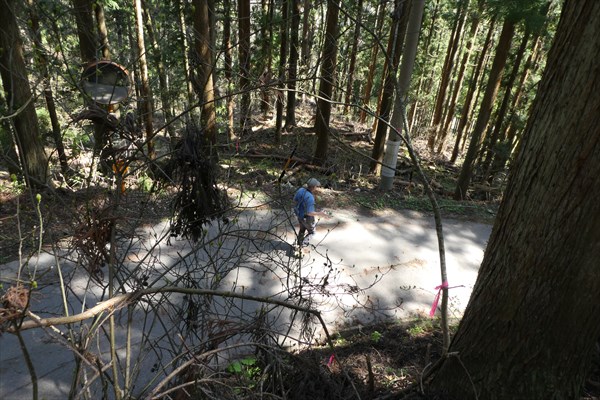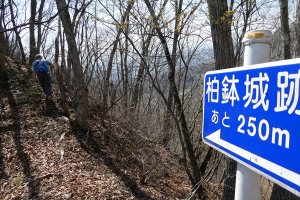 柏鉢城跡250m地点まで戻り車をデポした林道へ下山 |