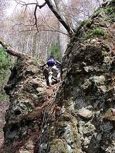 | 7.「奥の院」横の鎖場 | 8.ここで大休み わしゃ、くたびれたど〜! |