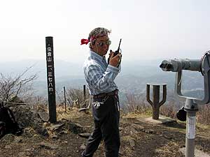 | 12.虫倉山山頂 1378M 自宅(長野市)の妻と無線で交信中 |