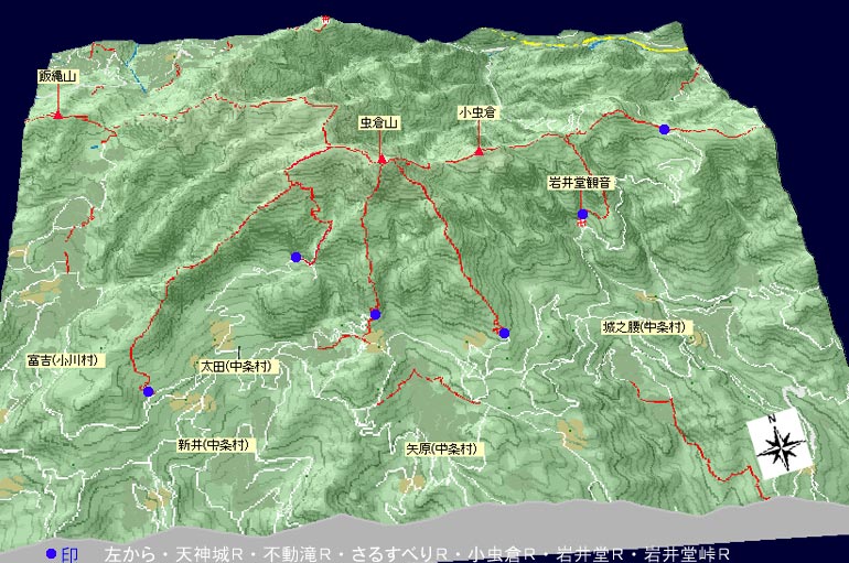 | 太田地籍(水車小屋・虫倉山案内板)マップコード 382-496-379 不動滝駐車場(4−6台)マップコード 382-526-118 |