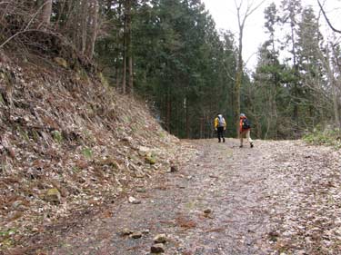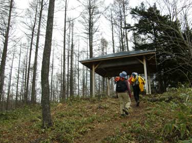 | 東屋 | 前方に虫倉山山頂が見える (尾根筋のアップダウン) |