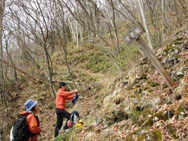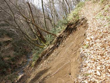 | 不動滝の上流部が近い | 徒歩に支障ないが深さ15cm幅2mの崩壊が 沢上流部徒渉地点 |