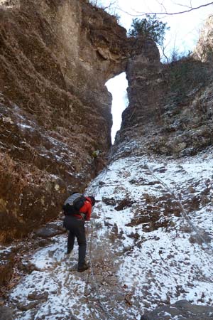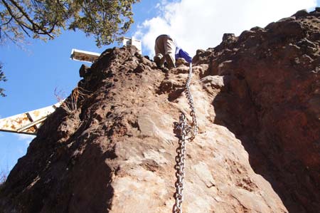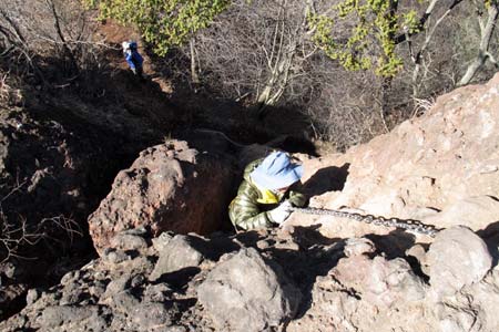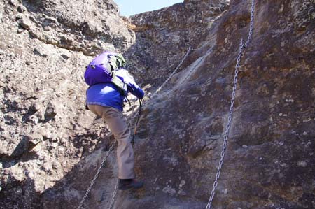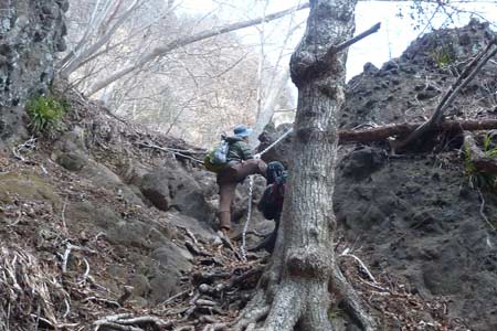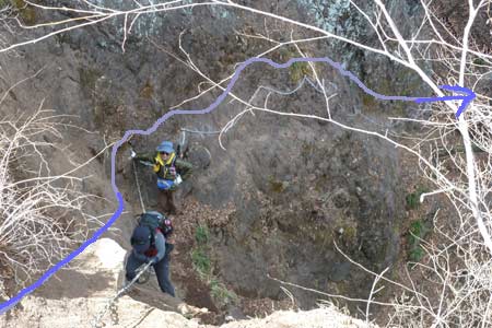 | 大の字裏側のクサリ場を直登!! と、言っても取っ掛かりが多いので簡単に登れるよ〜〜 | ||||