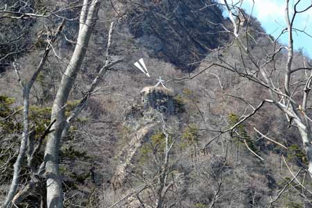 | 支尾根は痩せ尾根なので慎重に足を運びたい | 大の字を見下ろせる場所まで登り込む | |||