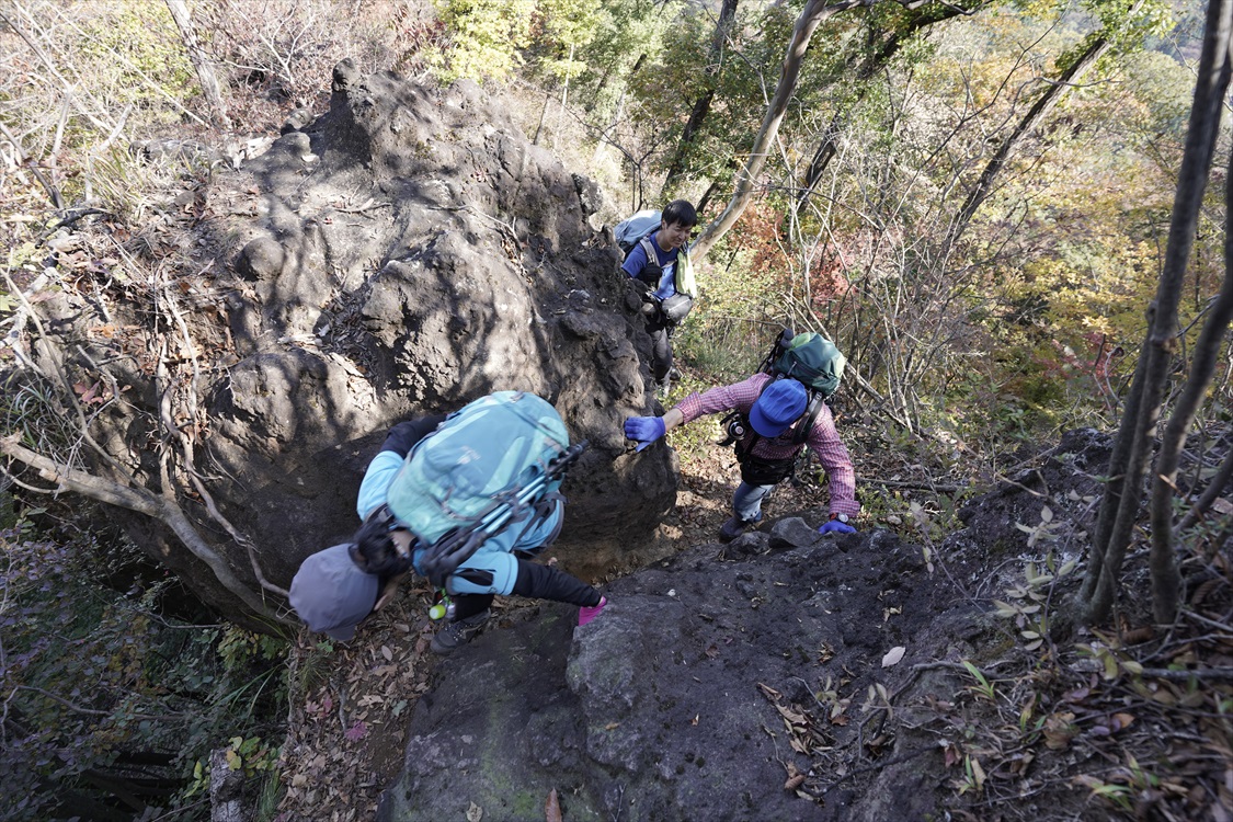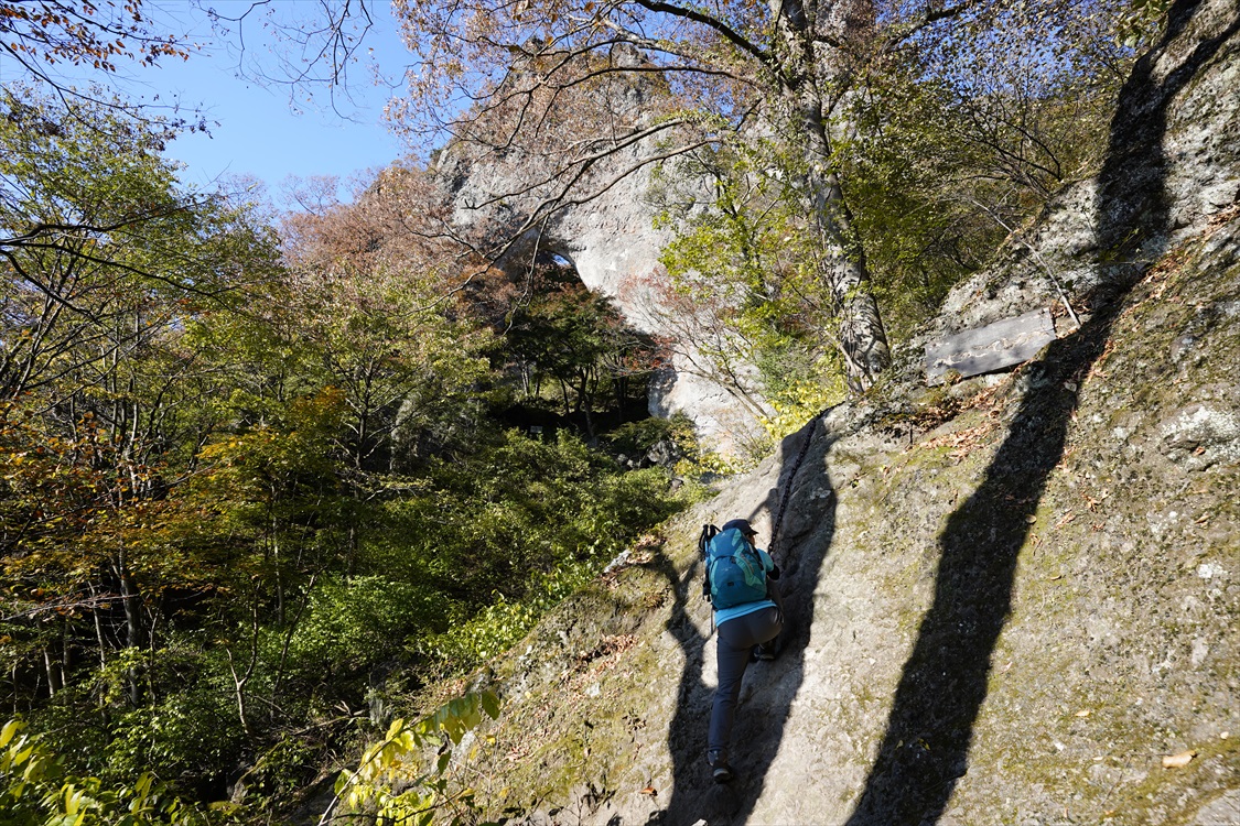 | 天狗の評定岩を降りる | 胎内くぐり岩横を降りる | |||