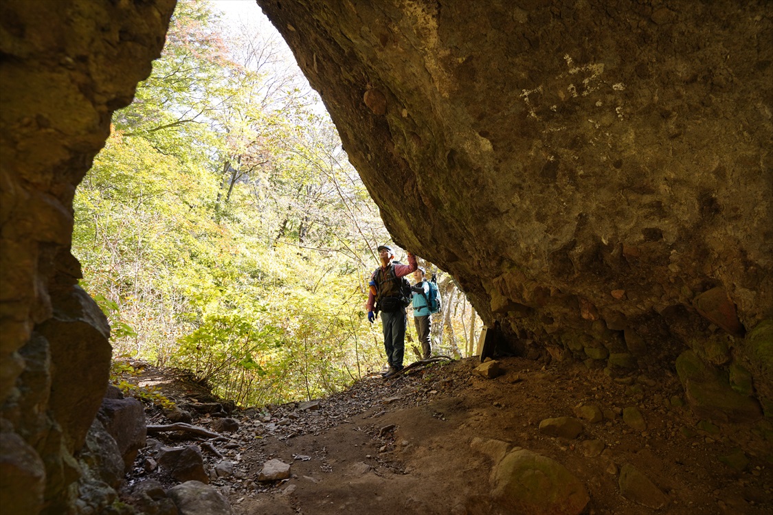 | 岩庇の下を歩く / 頭ゴツン注意! | ||||