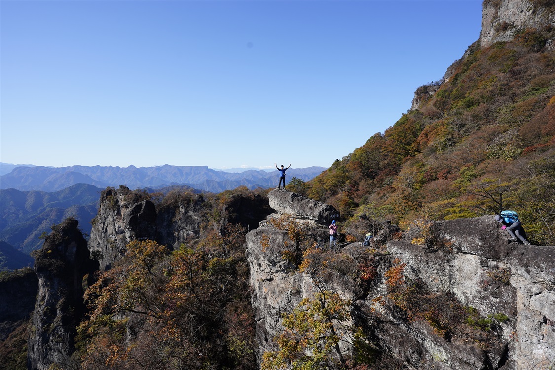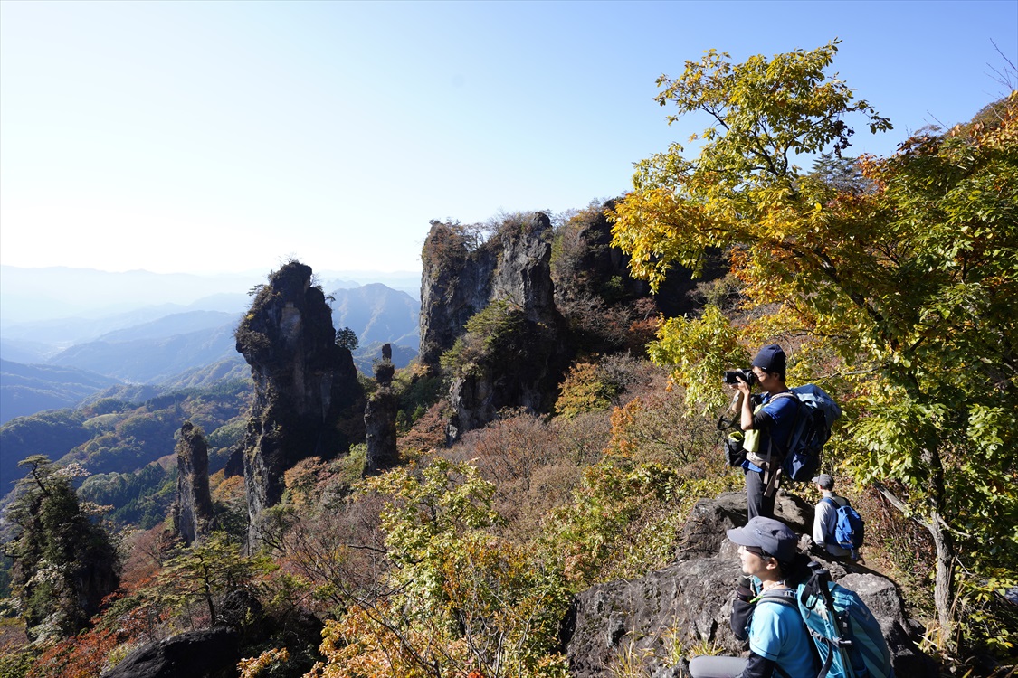 | 天狗の評定岩全景(大砲岩から撮影) 妙義山・大砲岩からのパノラマ図解あり |