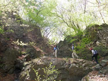 金鶏橋手前の「登山道入り口」道標に従って右手の露岩地帯を登り込み小さな沢筋を