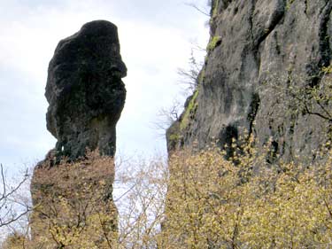 このコ−ス入口の大鳥居頭上をあおぐと、白雲山の岩壁と、その基部に妙義大権現を表す