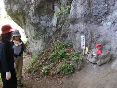 途中ブドウ園へ下るタルワキ沢コ−スと交差するが、自然石の「本読みの僧」を見ると中間道の