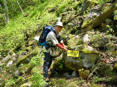 登山道下に流れる伏流水の音を聞きながら10分程上ると水神様の石標下にも名水の