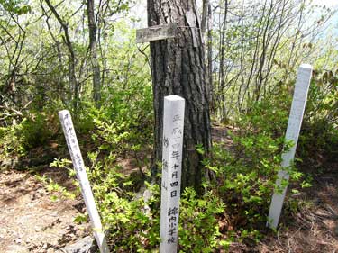 山新田地籍にはいったら須坂市八町へ続く林道を進み、長野市消防局「山火事注意」の