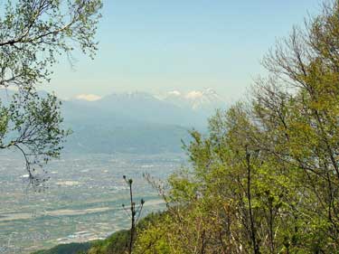 本宮殿からは眼下に長野市内を、左手は湯ノ丸山や烏帽子岳を望める。