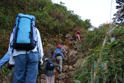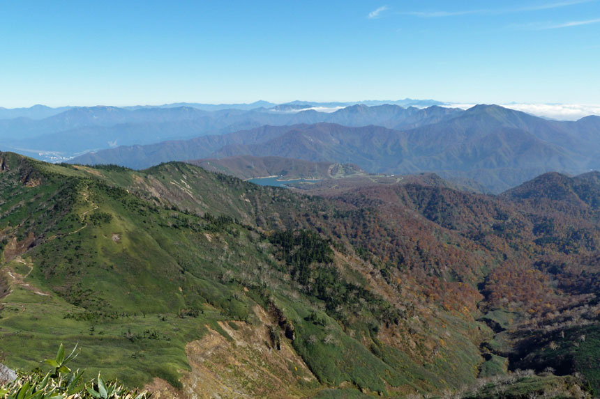 谷川岳方面大展望・左隅に祓川Rの踏み跡が確認できる |