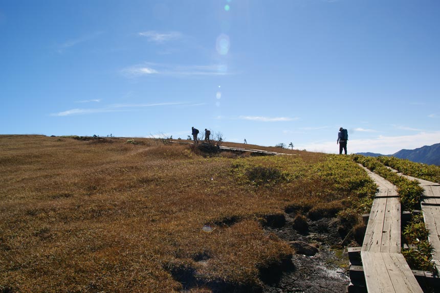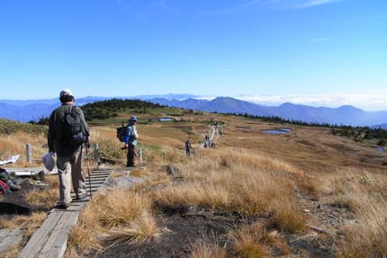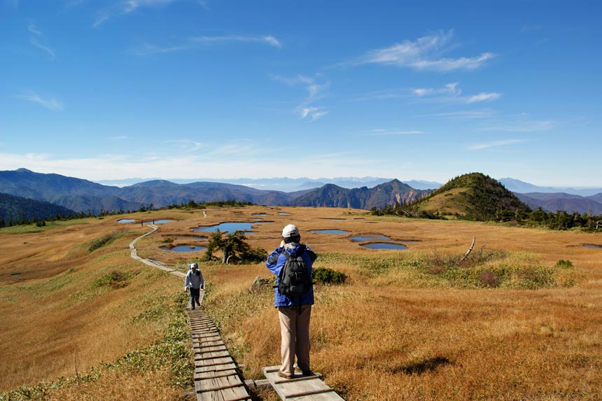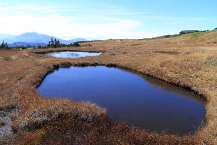 北アルプス・妙高山・火打山・鳥甲山の展望と池塘(ちとう)群/坪場近くより撮影 |