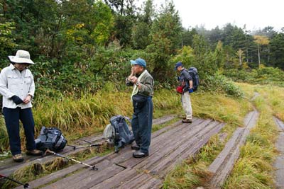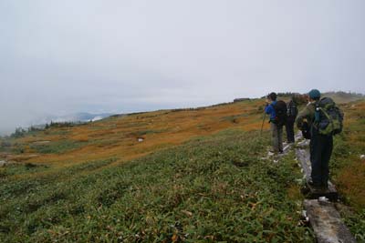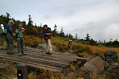 | 下ノ芝 この辺から植生保護の木道が多くなる |