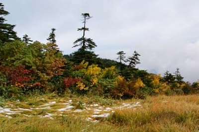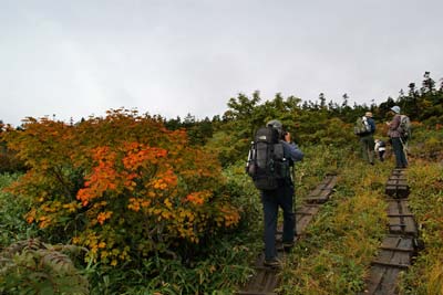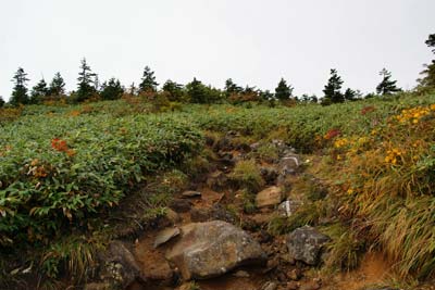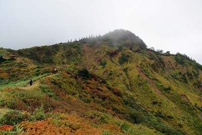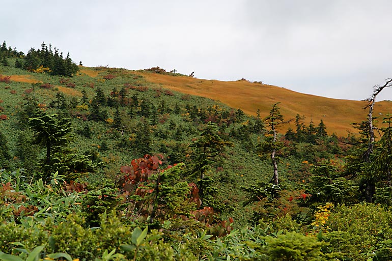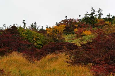 | 緑と草紅葉のコントラストが綺麗(小松原湿原へ続く中尾根上部) | ||||