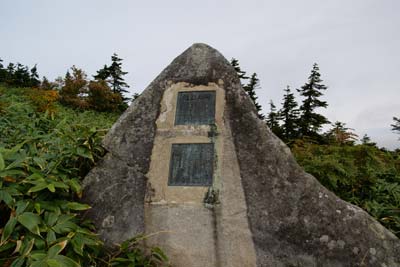 | 《写真にマウスを》 山頂散策ルート ⇔ 雲の切れ間から岩菅山が顔を出す |
