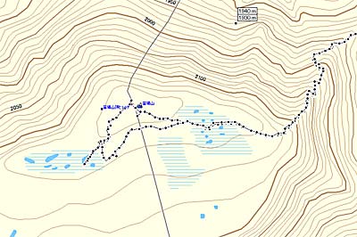 | (計曲線 100M 主曲線 20M) 駐車場標高/1224M 標高差/921.3M 総歩行距離/14993M |