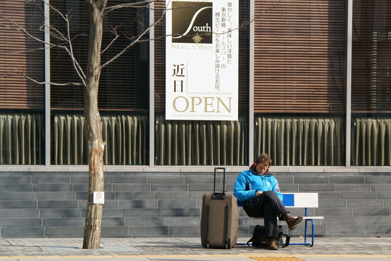 | バスを待つ外人さん、座っているだけでも絵になりますね〜(^o^) | ||||