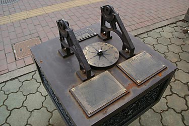 長野市役所前交差点にある円環型日時計 部品が足りないような気がするけれど・・・? |