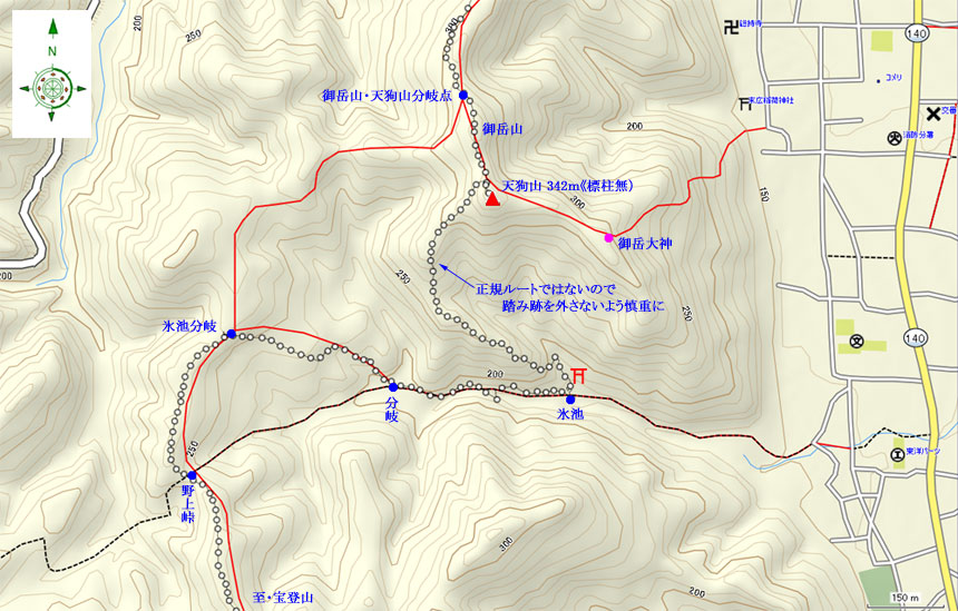 | 天狗山~氷池ルート?の拡大図/上記軌跡を辿られる方は自己責任で歩いて下さい | ||||