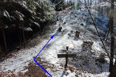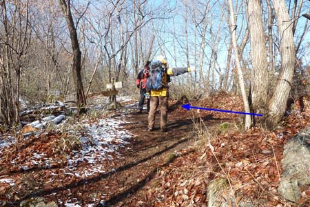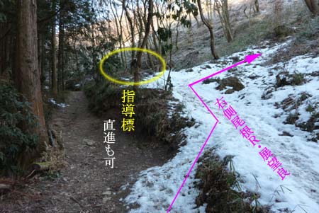 長瀞アルプス正規ルート(青矢印)の氷池分岐点まで戻る | |||