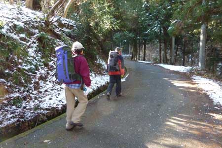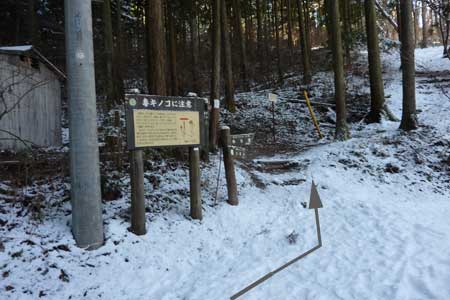 | 光安寺から延びる車道に合流 | 宝登山北斜面の登山口 | |||
