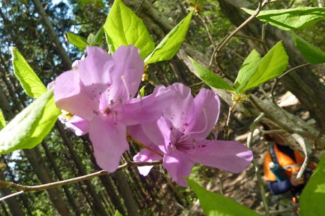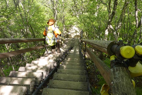 | 垂直に近い階段につき足を踏み外さないよう慎重に・・・ | トウゴクミツバツツジ | |||