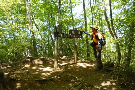 | 樹林帯の合間から顔を出した日光男体山1 | ロストしやすいところには必ず指導標がある | |||