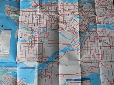 バンクーバー市内観光にはこのバスルート図が役に立ちます(名刺サイズも有り) |