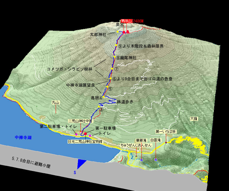 日光男体山登山地図