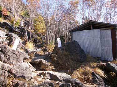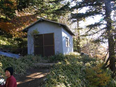 五合目の避難小屋 五合目を通過すると目にも鮮やかな紅葉が・・・