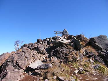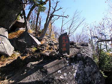 山頂と三角点は社務所脇から一段高い岩峰上にあり、山頂の大岩には