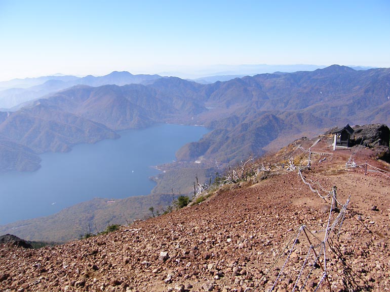 パノラマ図解でも分かるように眼下には中禅寺湖、戦場ヶ原、湖を取り巻くように