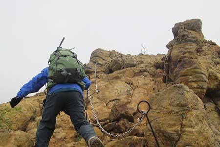 このモッコリ(剣ヶ峰)を右に巻いて岩稜部に取り付く |